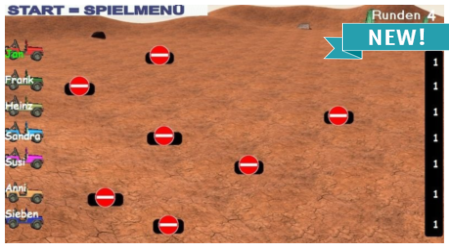 Auf geht es zur Wüstenrally. Hier werden die Wüstenjeeps durch die Wüste gesteuert. Der schnellste am Ziel gewinnt. Allerdings gibt es auch große Schlaglöcher die den Spieler wieder an den Anfang zurück bringen. Gespielt wird in verschiedenen Runde. Spüren Sie den Nervenkitzel der Wüstenrallye und kämpfen Sie um den Sieg! Die Schlaglöcher können deaktiviert werden um es noch leichter zu machen.